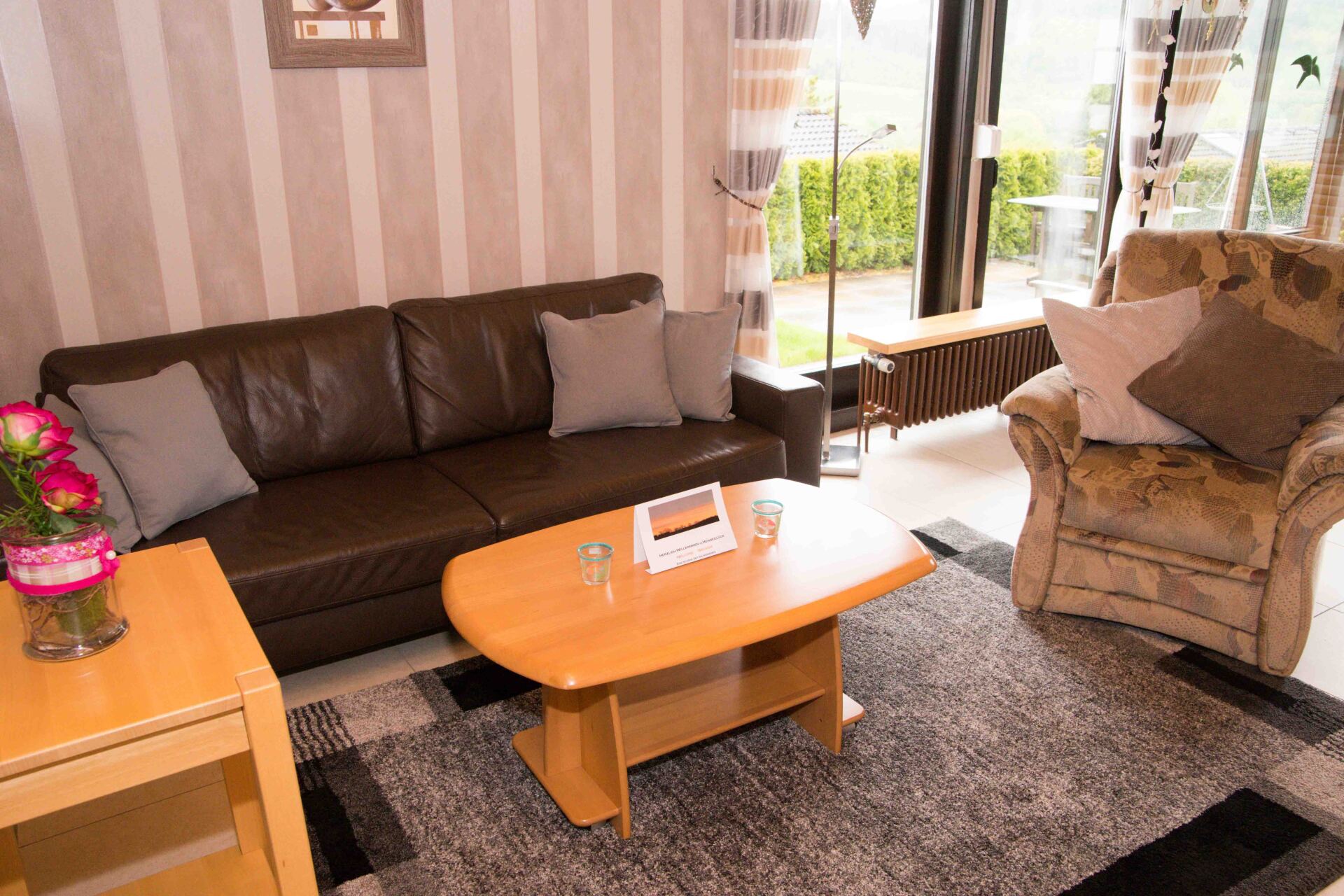 - Terrasse und Garten zur alleinigen Nutzung mit Gartenmöbeln, Auflagen, Sonnenschirm, Grill, Crocketspiel und Federball