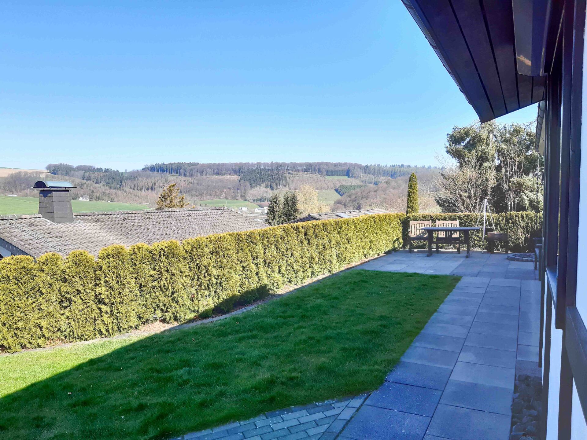 - Terrasse und Garten zur alleinigen Nutzung mit Gartenmöbeln, Auflagen, Sonnenschirm, Grill, Crocketspiel und Federball