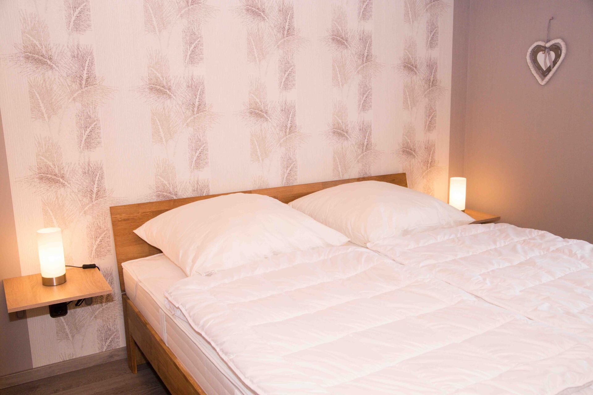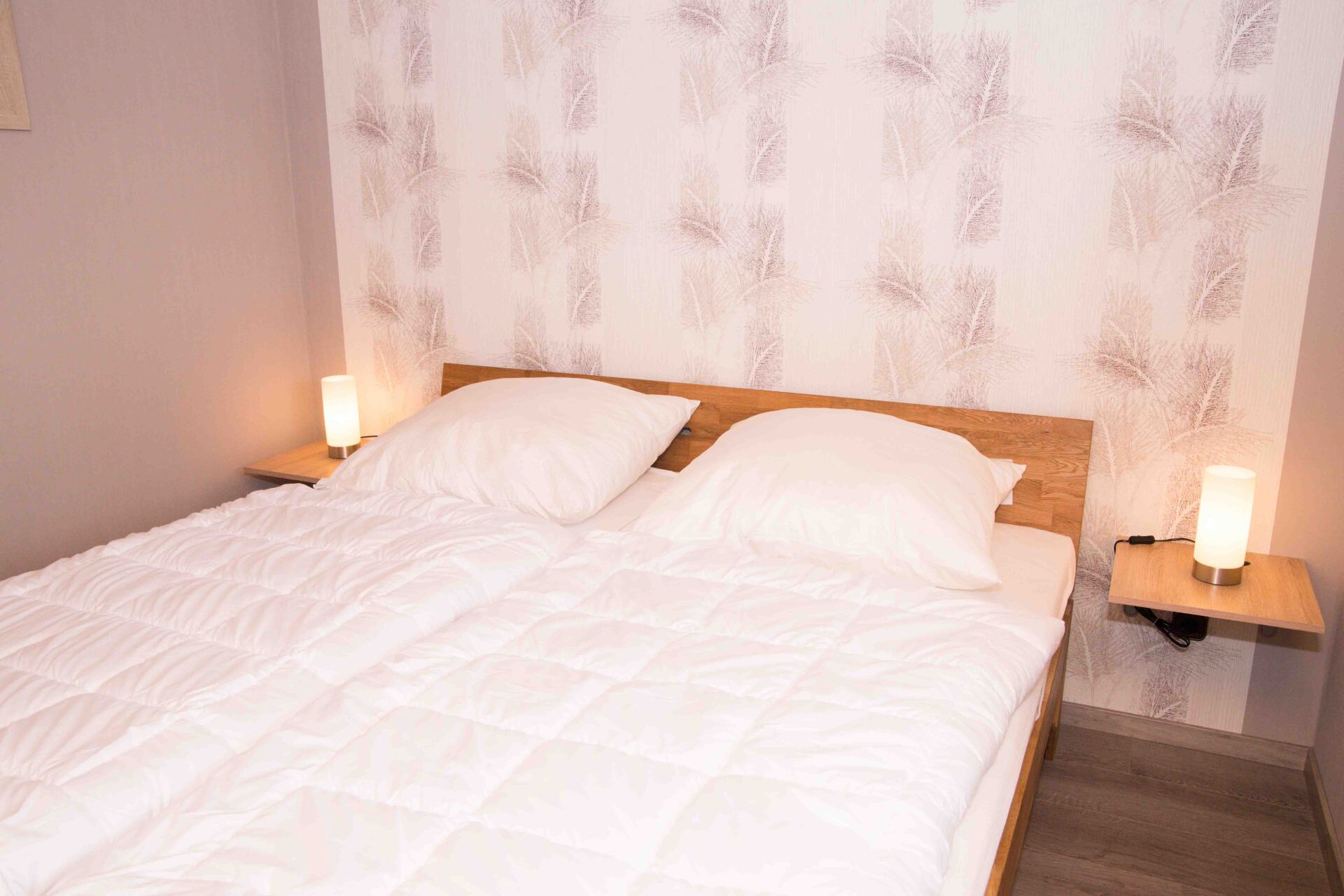 - zwei Schlafzimmer (ein Doppelbett 1,80 x 2m mit zwei Bettdecken je 1.35 x 2m, zwei Einzelbetten in der Größe 1 x 2m mit passenden Bettdecken 1,35 x 2m) Wichtig! Bettwäsche und Handtücher sind nicht inklusive!