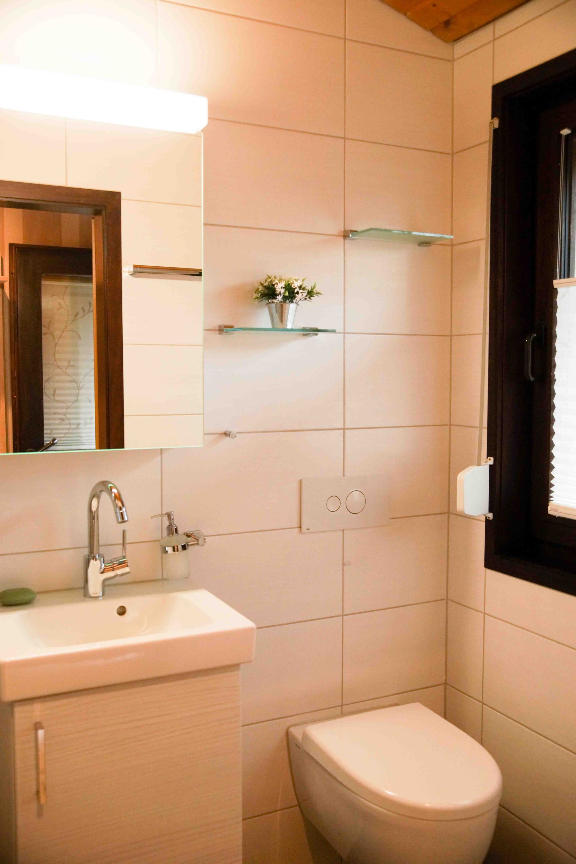Das Bad wie auch das gesamte Ferienhaus sind 2019 umfassend hochwertig renoviert worden und vermitteln Wohlfühlatmosphäre wie Zuhause.
